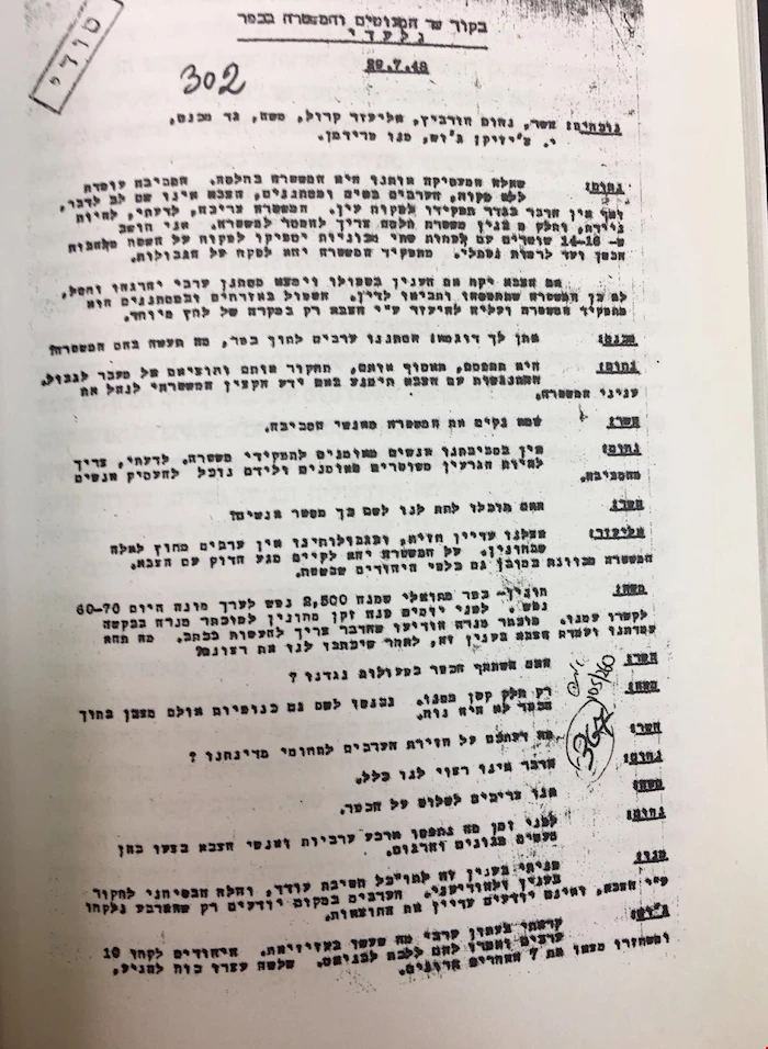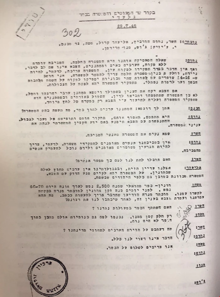 في كيبوتس كفار جلعادي، هناك مبنى كبير هو متحف الطبيعة، تم بناؤه من حجارة بيوت قرية هونين. لقد تمت سرقتها، ونقلها بعد هدم القرية لبناء المتحف. الأمر يثير اهتمام أحد أبناء الكيبوتس ويدعى تومر، فيبدأ، قبل نحو عشر سنوات، في البحث في الموضوع. خلال بحثه في الأرشيف، يقع بين يديه البروتوكول الذي يوثق اللقاء مع وزير الشرطة في التاسع والعشرين من تموز، والذي يحوي في آخره خبر اغتصاب، وإعدام الصبايا. يصوره ويحافظ عليه.