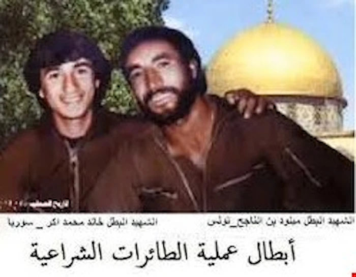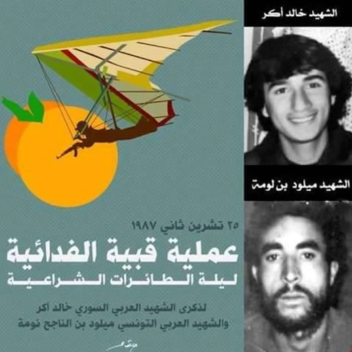 خليّة قبية الفدائية مُكوّنة من أربعة أشخاص، إثنان فلسطينيان لا نعرف إسمهما حتى اليوم، وآخر سوري إبن مدينة حلب يُدعى خالد محمّد أكر، والرابع تونسي إسمه ميلود ناجح بن نومة، الوحيد الذي نجح في الوصول بطائرته الشراعية إلى معسكر الجيش.
