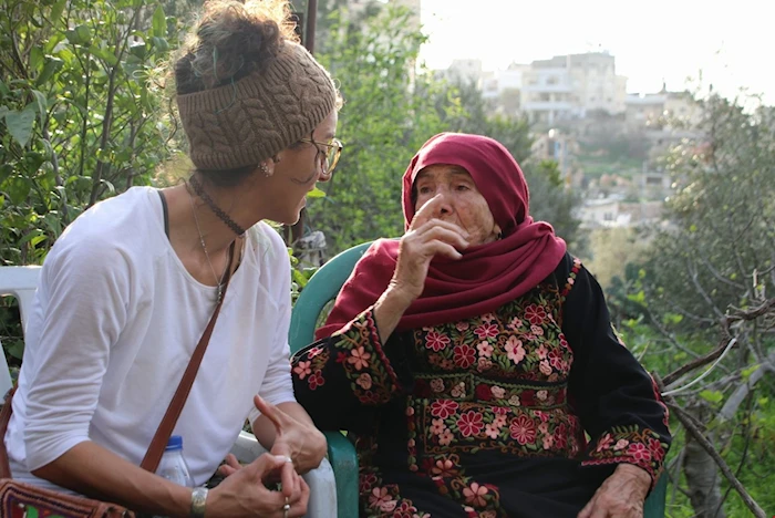 وصلنا إلى بيت الحاجّة حوا الخواجا، وكانت في انتظارنا مع أقربائها. يبدو عليها أنها مُنفعلة، ومتأثّرة من هذا اللقاء. استقبلتنا بوجهها الجميل، وابتسامتها العذبة، رغم أنها كانت قلقة من تأخّرنا في الوصول. استقبلتنا بحفاوة بالغة، وهي تلبس الزيّ الفلسطيني كأنها في عرس لأحد أبنائها